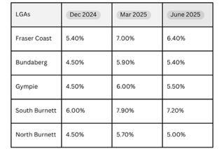 🦺 Unemployment has seen a 1.4% increase on the June quarter from 5.0% June 2024 to 6.4% in June 2025. Pleasingly, this is still lower than the March 2025 figure of 7.0%. Feedback from the economist team at informed decisions suggest the recent drop is consistent with the trend observed across the Wide Bay Region as per the below: